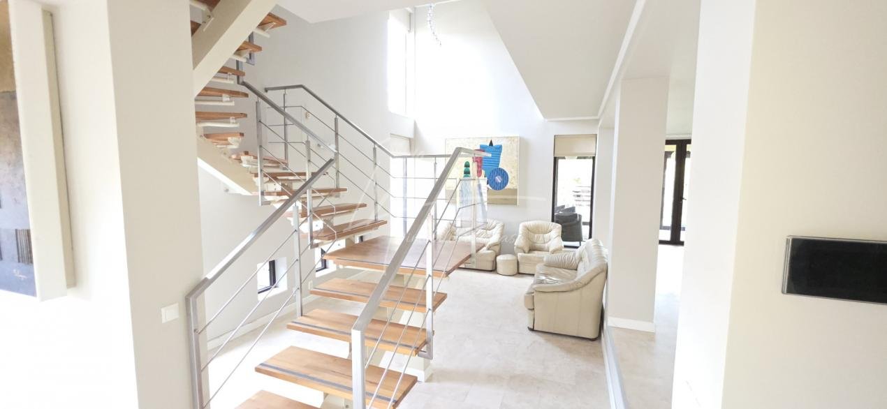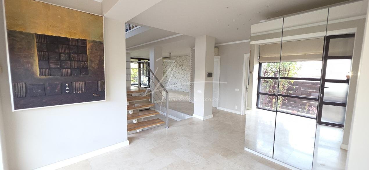 Privita din exterior, iti transmite imediat acel aer cald, echilibrat, specific stilului mediteraneean: volumetrie moderna, linii curate, accente din piatra naturala si terase generoase care invita la relaxare. Este genul de proprietate care nu incearca sa impresioneze ostentativ, ci o face natural – prin proportii, lumina si detalii bine gandite. Spatiul – libertate reala, nu doar metri patrati
