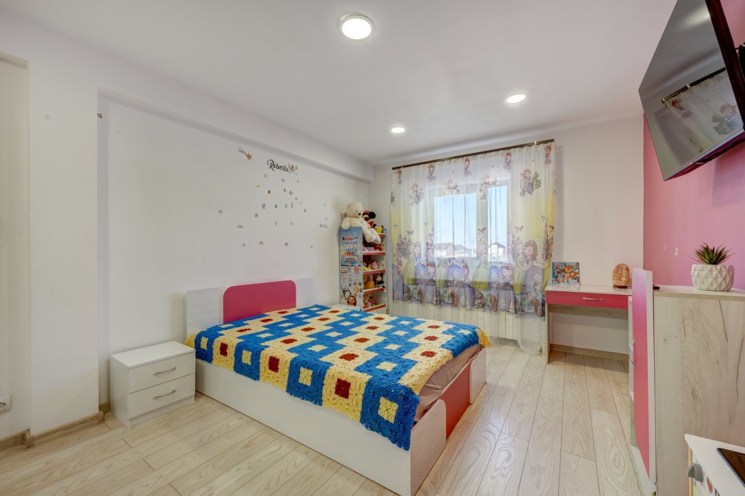Casă ergonomică cu 4 dormitoare și 2 băi, în stare foarte bună. Zonă liniștită și civilizată, cu construcții noi și trafic auto redus, ideală pentru o familie care își dorește confort și intimitate.