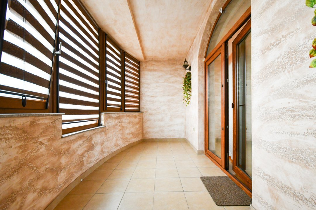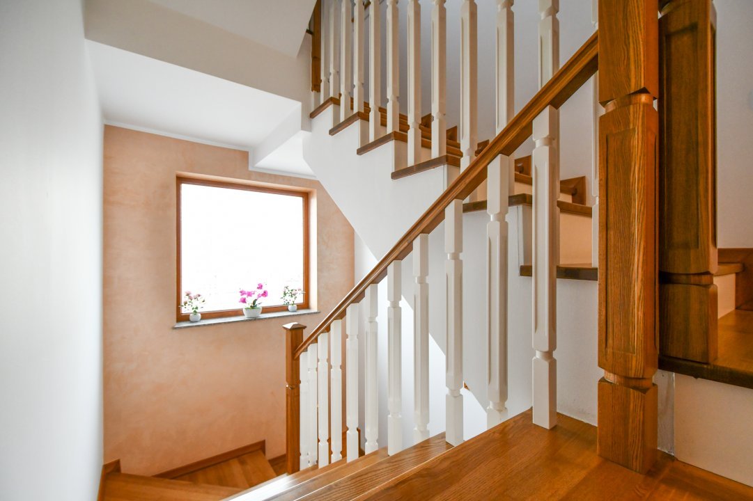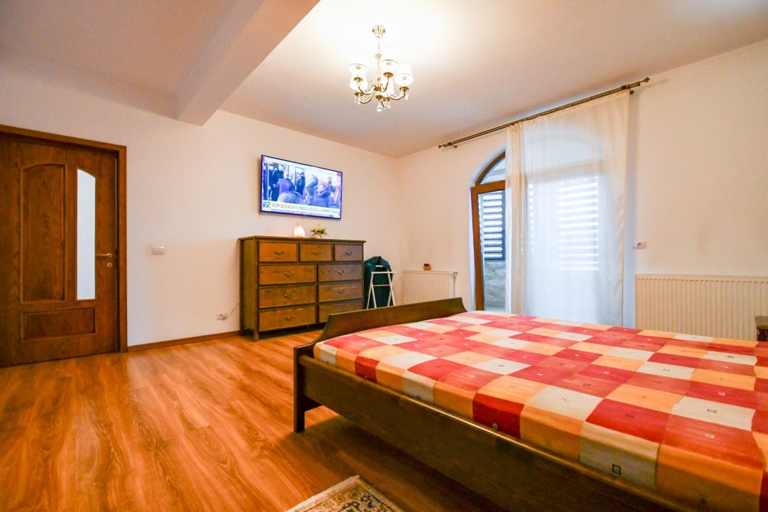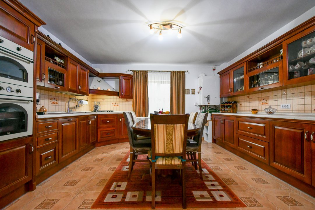 Ferestre din PVC (8 camere nuanta stejar) GEALAN si QFORT cu geam tripan reflexiv si geam sablat ornament, pervazuri din granit si feronerie MACO, gresie si faianta ceramica portelanata, parchet laminat trafic intens 12mm, instalatii alimentare apa din PPR (verde) cu bariera termica, instalatie scurgere/canalizare ingropata cu evacuare mare de ø160, instalatii termice din PPR verde cu bariera termica si UPONOR prin manson de protectie asistate de distribuitoare de caldura montate pe fiecare nivel, centrala termica pe gaz RIELLO FAMILY ITALIA 36KW in condensare cu boiler 110L incorporat si stabilizator de tensiune, calorifere otel si portprosop in bai, sistem fotovoltaic compus din 12 panouri Sharp cu putere 6,8 KW montate pe ferme metalice (costuri minime in timp - prosumator de 3 ani), invector Huawei putere 12KW, bransament 380V cu putere instalata 15KW, instalatii electrice 220V din cupru multifilar (bransament general Ø6, coloane alimentare Ø4, prize Ø2,5 si iluminat Ø2,5) asistate de tablou sigurante automate elaborat pe fiecare nivel, cu prize si intrerupatoare modulare Schneider si doze generale de legatura in fiecare camera, instalatie curenti slabi (internet si cablu TV) in camere, aparat de aer conditionat Mitsubishi Inverter 22000 BTU, sistem de alarma PARADOX, conectat la firma de paza si monitorizare video 24h/24h cu 8 camere de luat vederi receiver si monitor, videointerfon, usi interior din lemn stratificat cu garnituri etansare si feronerie premium, scara interioara din beton armat cu trepte placate lemn frasin si mana curenta lemn, usa acces imobil din PVC cu ranforsare antiefractie, baile dotate cu obiecte sanitare de la diverse firme de prestigiu IDEAL STANDARD - HANSGROHE etc, interior finisat cu stucco venetian si zugraveli lavabile.