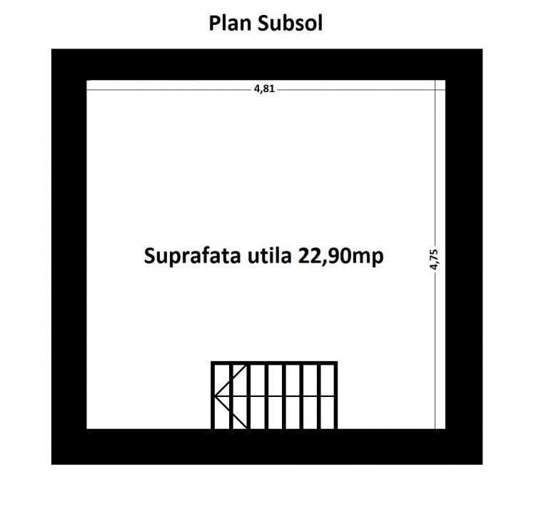 Subsol – Camera depozitare si casa scarii – Total util 22,90mp;