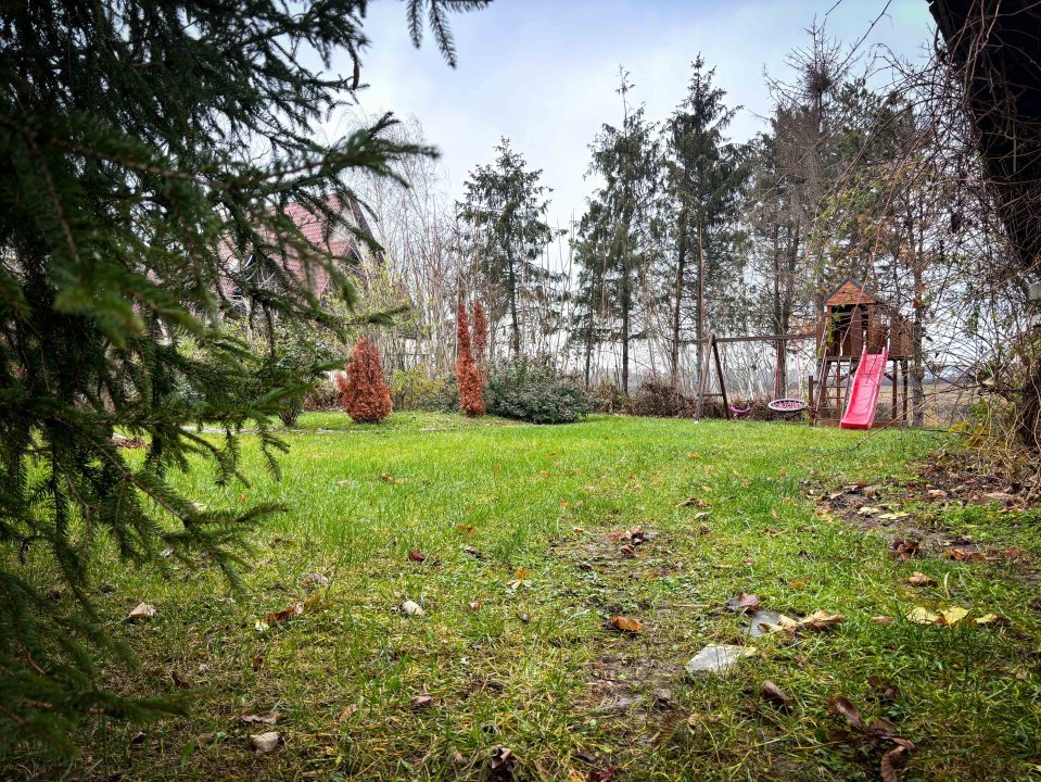 Grădină generoasă ajunsa la maturitate și amenajată, dotată cu un sistem complet de irigare (aspersoare și picurare), grădina oferă un spațiu verde impecabil, ideal pentru momentele de relaxare alături de cei dragi.