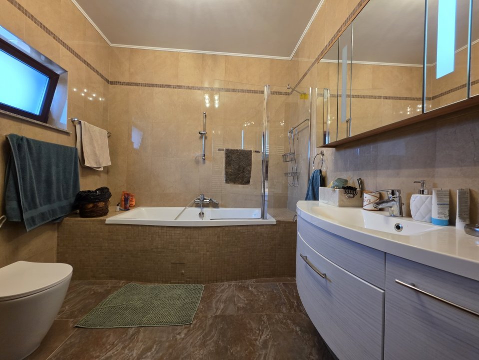 Etaj : trei dormitoare mari, două băi, dormitor matrimonial cu dressing și baie proprie.