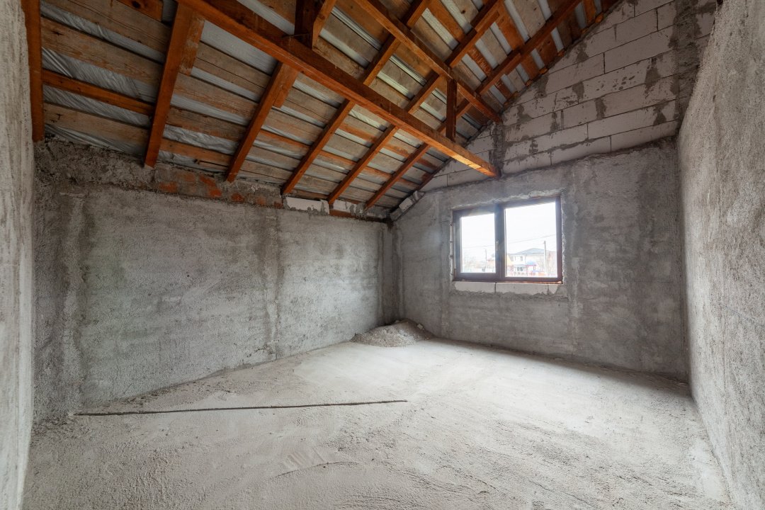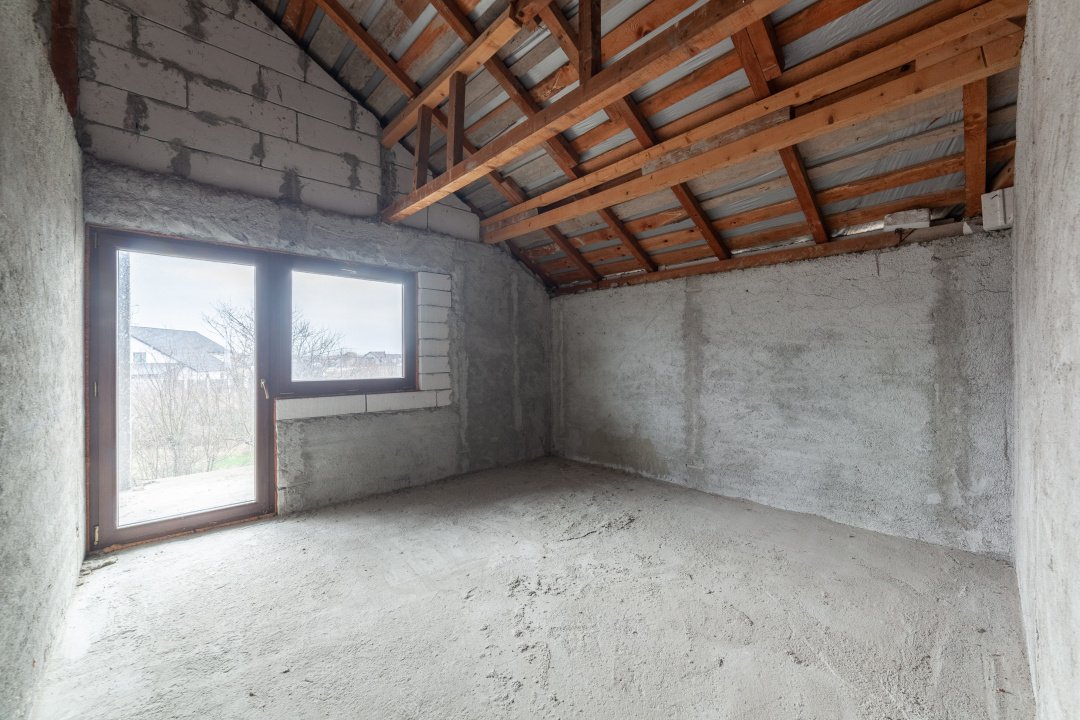 *** La parter regasim un living spatios, bucatarie, 2 dormitoare, dressing, baie si camera tehnica/dressing, iar la etaj sunt patru dormitoare, o baie si doua balcoane. Casa este „la gri”, cu instalatiile electrice si termice realizate la parter, caloriferele fiind deja achizitionate, oferind astfel un punct foarte bun de plecare pentru finisare.
