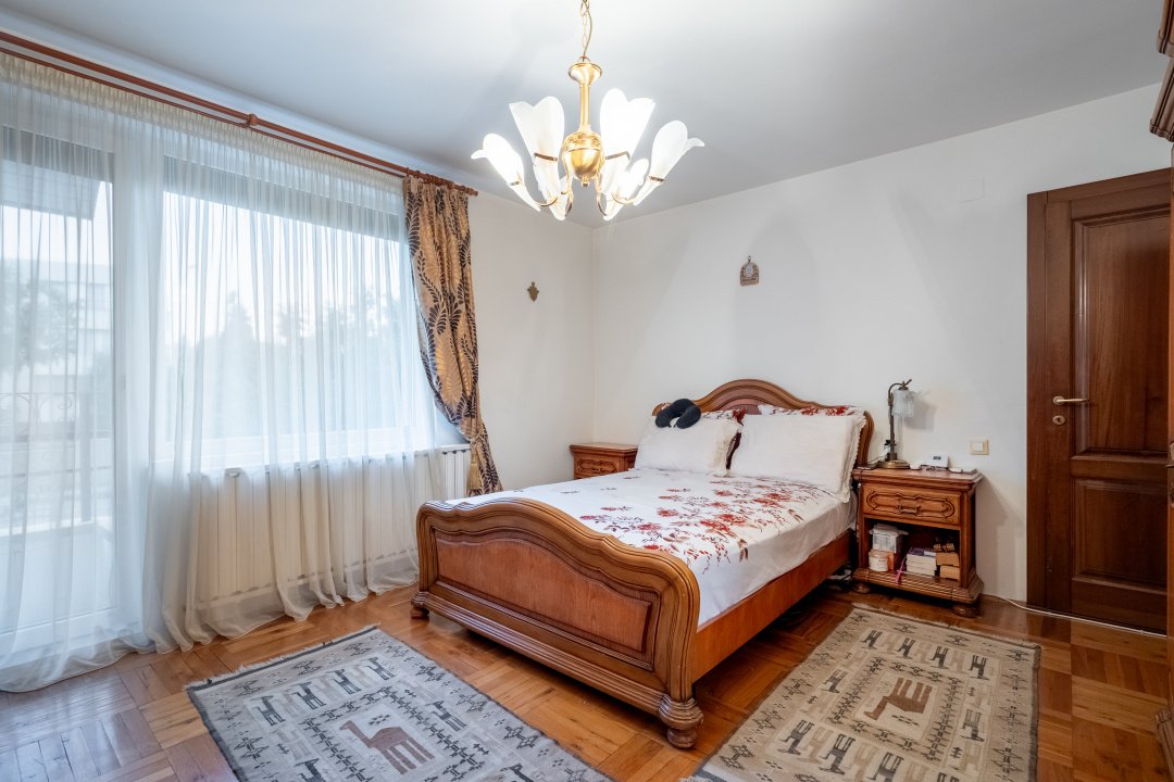 Proprietatea este dezvoltată pe demisol + parter + etaj + mansardă, are 8 camere, o suprafață utilă de aproximativ 334 mp și un teren de 670 mp, cu curte amenajată și piscină exterioară încălzită.