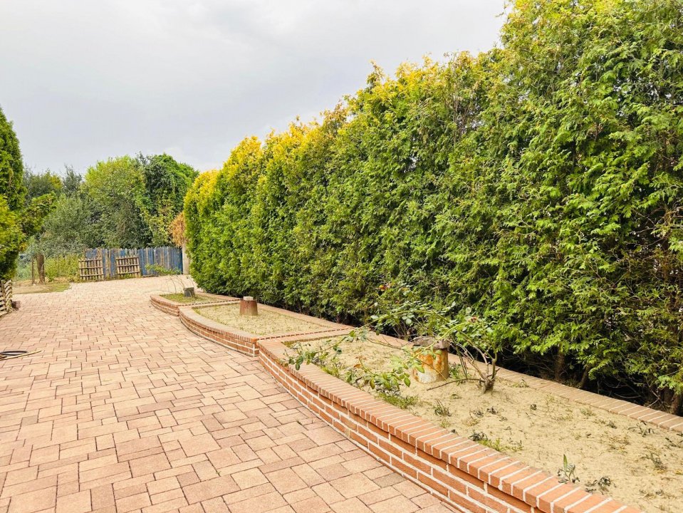 CURTEA generoasa, de peste 1200 mp, atent amenajata, imbina armonios zonele pavate si zonele cu spatii verzi si delimitari naturale de tuia, ofera atat functionalitate, cat si intimitate, estetica si momente de liniste si relaxare in aer liber.
