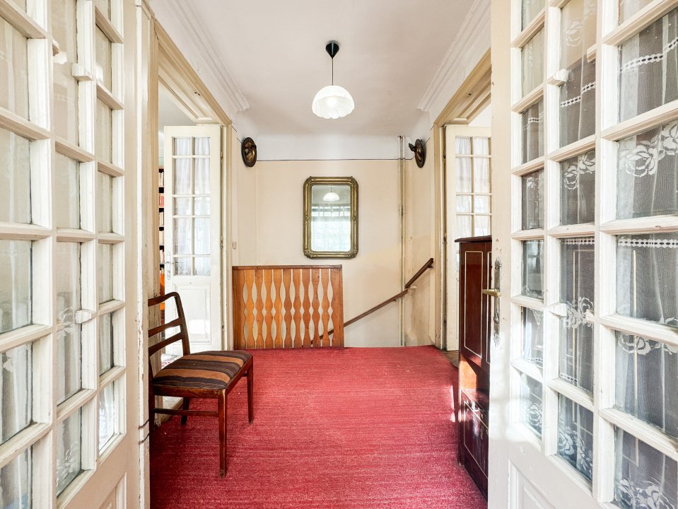 Proprietatea păstrează farmecul autentic al perioadei: ferestre înalte compartimentate, bovindou elegant, uși și tocuri din lemn masiv, brâuri și cornișe decorative. Atmosfera casei te duce instant în Bucureștiul anilor ’30, într-o epocă în care detaliile se construiau cu meșteșug și grijă pentru proporții.