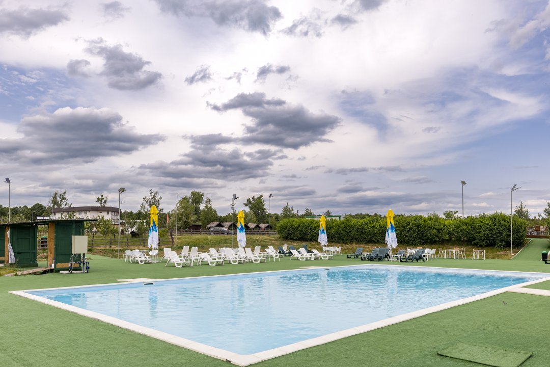 - *Piscină*: O piscină modernă care oferă oaspeților posibilitatea de a se relaxa și de a se răcori în zilele călduroase.
