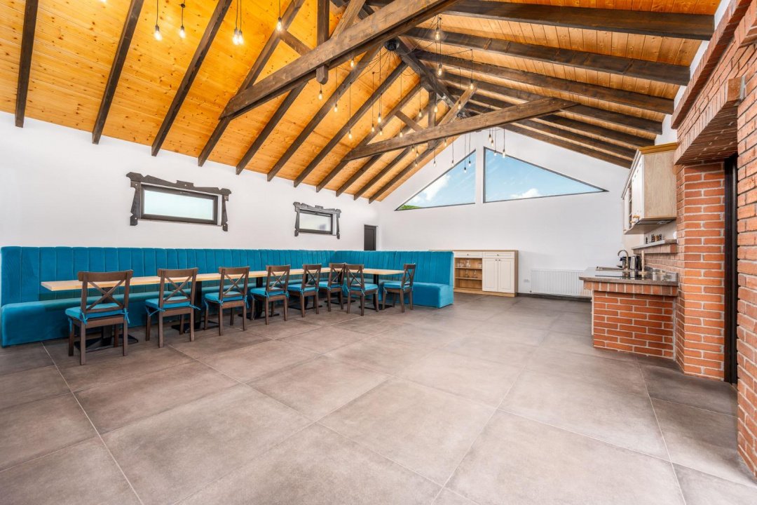 Pavilion de tip foisor inchis, generos cu zona de servire a mesei si ideal pentru petreceri private. Totul este amenajat cu foarte mult bun gust, atentie la detalii, materiale si finisaje de calitate. Bucatarie complet utilata. Terasa spatioasa si curte amenajata cu pavele, usor de intretinut. Parcare privata. Panouri solare capacitate 18 kw. Pompa de caldura capacitate 20. Cheltuieli minime de intretinere. Acces rapid la toate atractiile zonei.