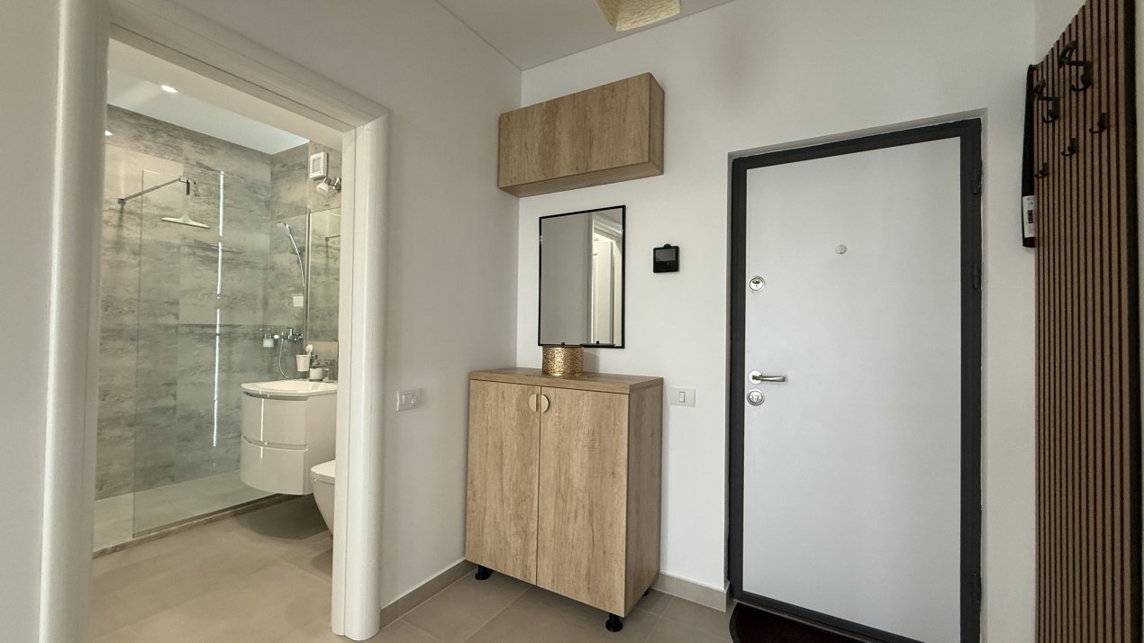 Apartamentul este semidecomandat, are o terasă de 5 mp cu vedere spre Lacul Siutghiol și către piscina ansamblului.