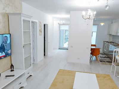 Apartament 2 camere de închiriat – Piata Ovidiu, Constanța | vedere la mare | prima închiriere Vă propunem spre închiriere un apartament modern cu 2 camere, situat într-o locație deosebită – chiar în Piata Ovidiu, la doar 150 de metri de plajă. Proprietatea se află la etajul 1 din 2 al unui bloc..