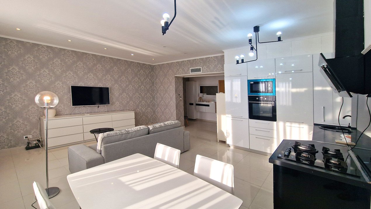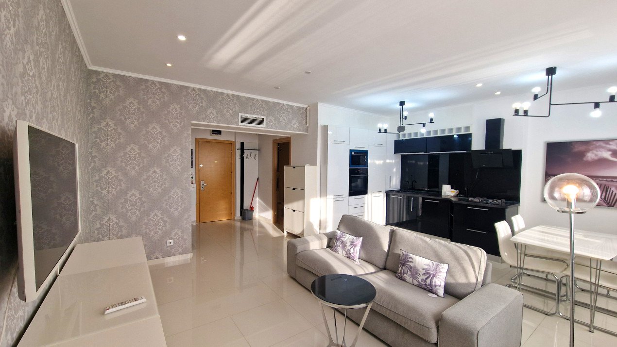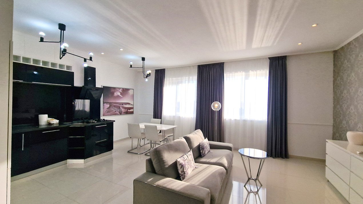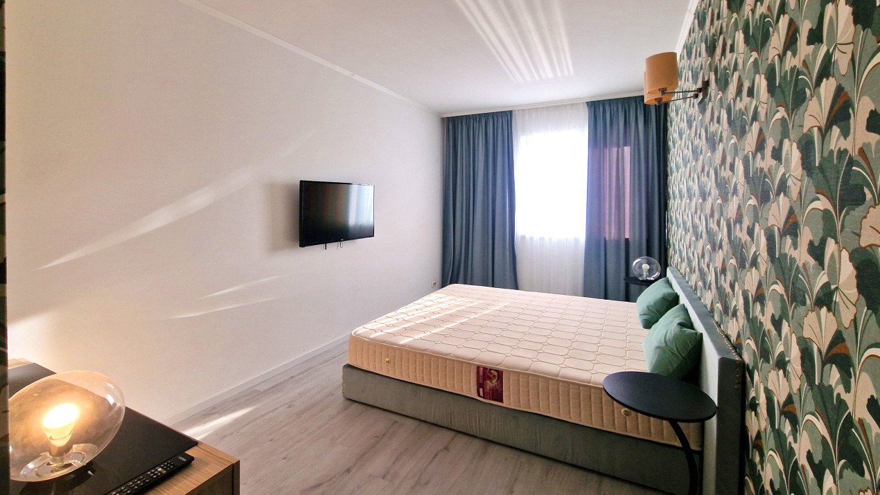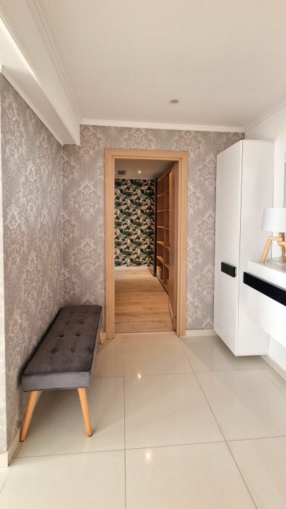 Locuința este amplasată la etajul 10 din 13 și beneficiază de o priveliște deschisă, lumină naturală și un nivel ridicat de intimitate. Apartamentul se vinde complet mobilat și utilat, cu electrocasnice și piese de mobilier de calitate superioară, fiind gata pentru mutare imediată. Compartimentarea este bine gândită: hol generos dotat cu dressing, baie modernă cu cadă, mașină de spălat cu uscător și uscător de păr, dormitor matrimonial confortabil, prevăzut cu pat, saltea premium, perdele și draperii noi, plus un Smart TV de 140 cm cu Netflix. Bucătăria open space este complet echipată și se îmbină armonios cu livingul, creând un spațiu primitor ideal pentru relaxare.