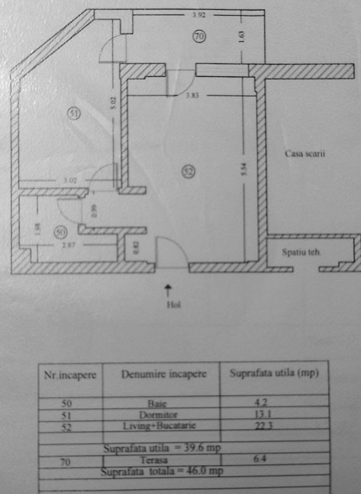 Suprafață totala: 46 mp din care terasa are 6 mp | 🛏️ Dormitoare: 1 | 🛁 Băi: 1