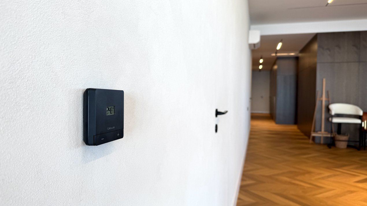 Tot pentru confort s-a optat pentru încălzire în pardoseală în tot apartamentul, mochetă în dormitoare, parchet triplustratificat în living room, hol și bucătărie, dar și în camera hobby sau birou.