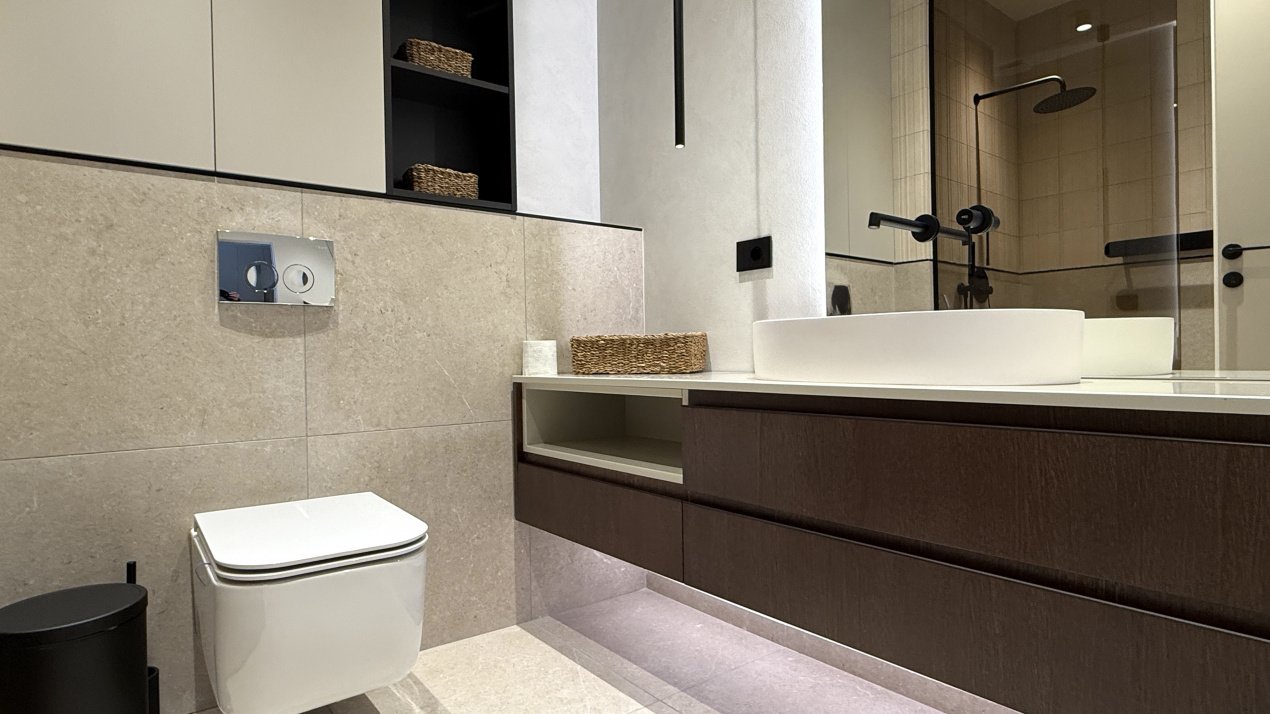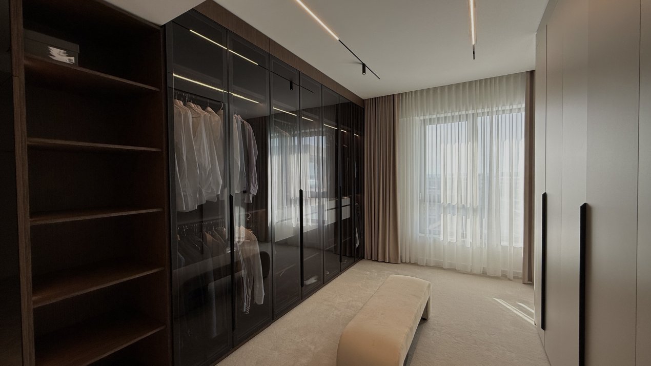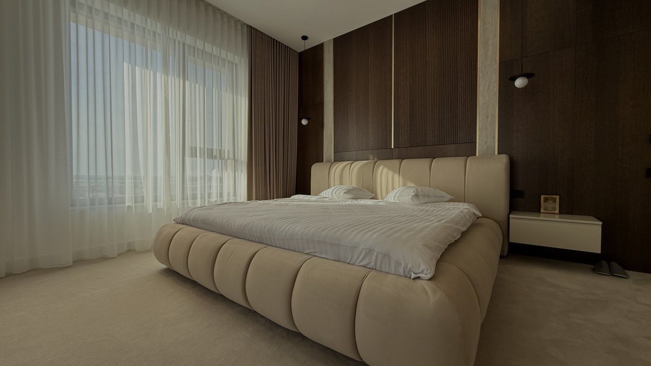 Lumina naturală inundă fiecare încăpere datorită suprafețelor vitrate generoase, iar compartimentarea deschisă creează un ambient aerisit și rafinat. Întregul apartament a fost amenajat cu atenție la fiecare detaliu, pe baza unui proiect de design interior realizat de o echipă profesionistă, unde mobilierul și elementele decorative se îmbină armonios pentru a crea o atmosferă elegantă și primitoare.