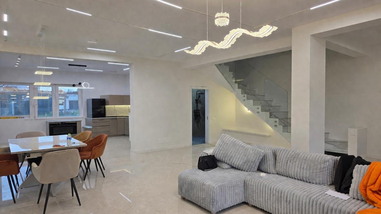 Designul contemporan, liniile curate ale fațadei și compartimentarea eficientă creează un ambient modern, luminos și funcțional, potrivit atât pentru viața de familie, cât și pentru un stil de viață activ, aproape de oraș.