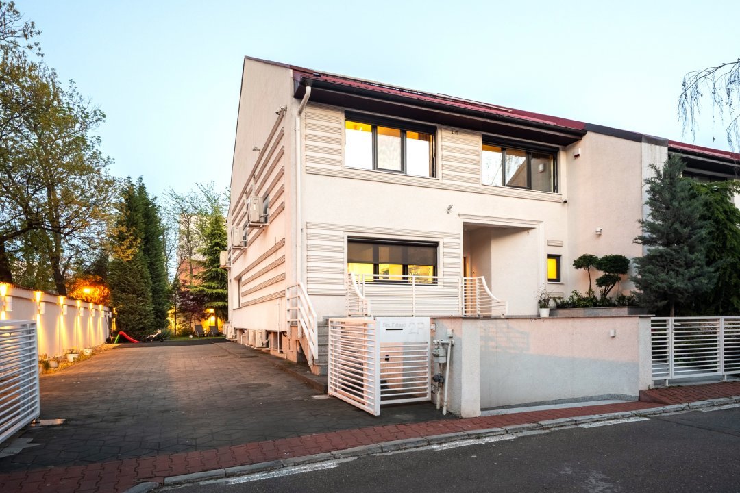 La exterior, o siluetă sobră, elegantă. La interior, un labirint de rafinament distribuit armonios pe Demisol, Parter, Etaj și Mansardă, cu o suprafață utilă de 381 mp, construită pe un teren cu 347 mp liberi și o amprentă de 133 mp. Cinci locuri de parcare — pentru fiecare oaspete important, dar doar unul are privilegiul garajului de la demisol.