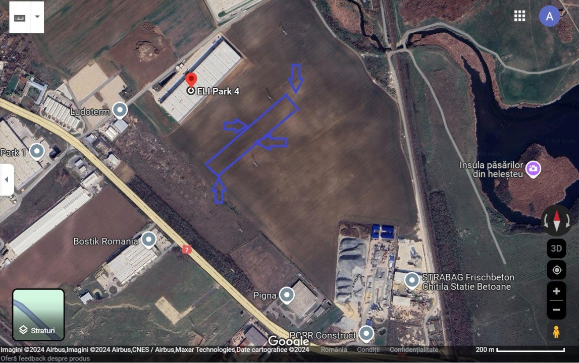 Teren industrial de vânzare în zona Buftea, lângă Eli Park 4, cu o suprafață generoasă de 13.999 mp.