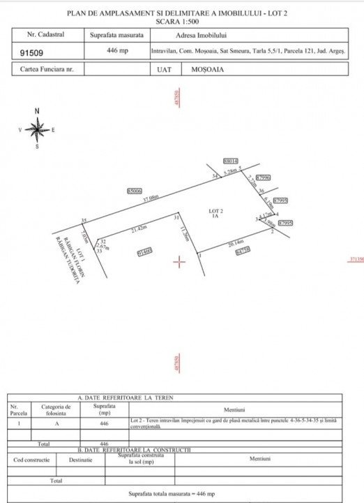 Vă propun spre vânzare un teren intravilan de 446 mp, amplasat pe strada Pinilor la doua minute de Pitesti, una dintre cele mai căutate și apreciate zone ale Piteștiului, in continua dezvoltare. Deschidere 7 m la drum privat. Toate utilitățile disponibile in vecinatatea terenului. Zonă liniștită, de case, cu acces rapid către punctele de interes din oras. Ideal pentru construirea unei locuințe moderne sau pentru investiție pe termen lung. Preț competitiv pentru zonă. Documentația este pregătită pentru vânzare, iar terenul are situație juridică clară. Pentru detalii și programarea unei vizionări, mă puteți contacta