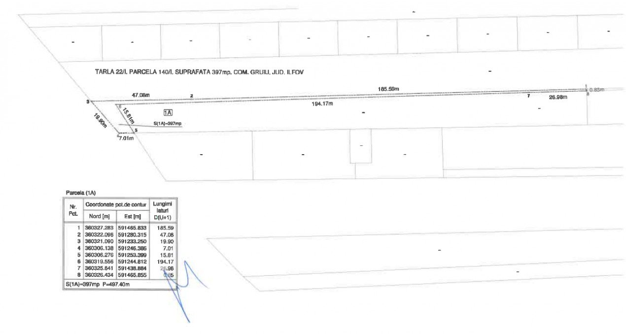 Proprietatea are o suprafață de 3.600 mp și o deschidere de aproximativ 19,9 ml, oferind multiple posibilități de parcelare sau construire a unei locuințe individuale ori a unui proiect rezidențial.