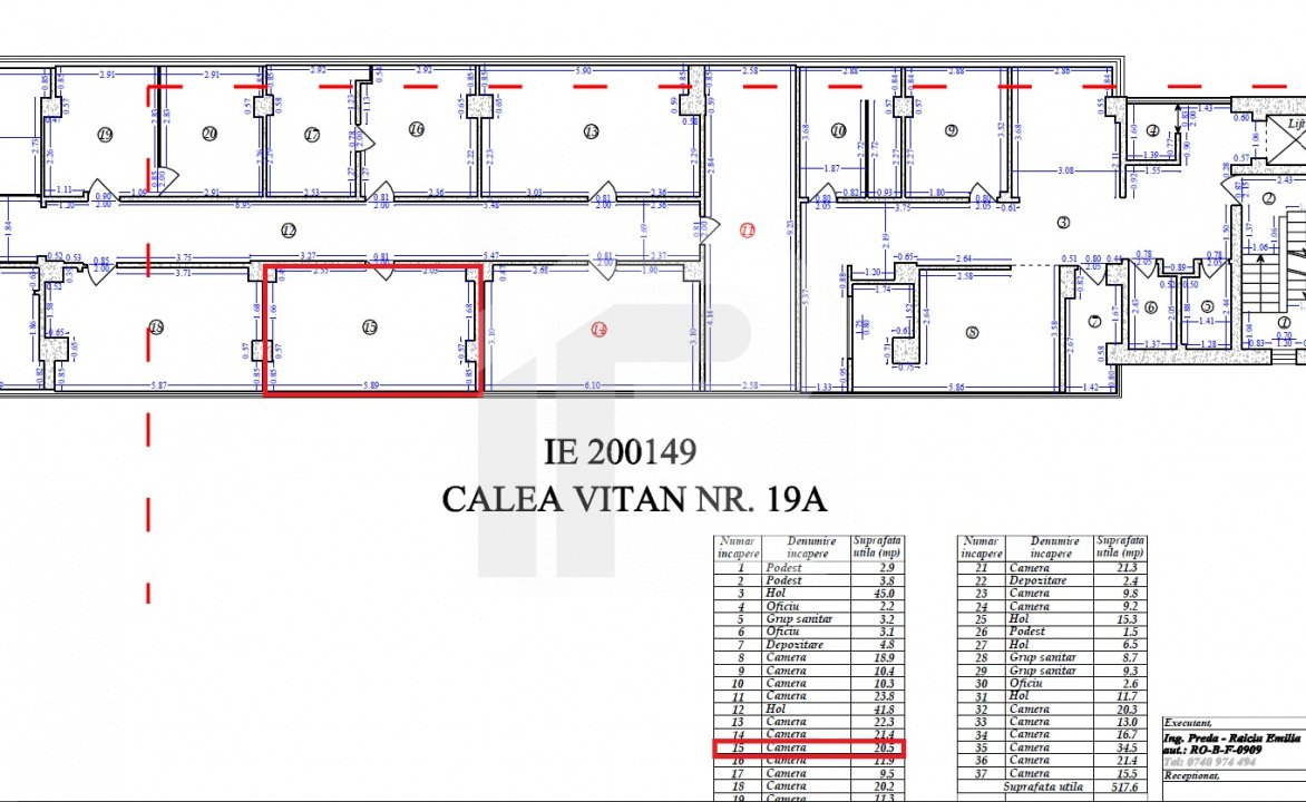Spatiul se afla la etajul 1 si dispune de 20.5mp utili, la care se adauga spatiile comune. Dispune de acces la un grup sanitar cu acces prin cartela.
