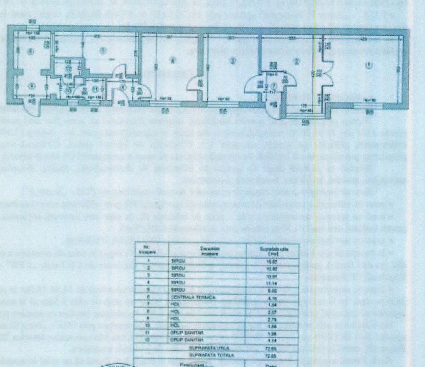 Clădire birouri – 166 mp: situată pe parter, compusă din 6 camere, spațiu tehnic și grup sanitar.