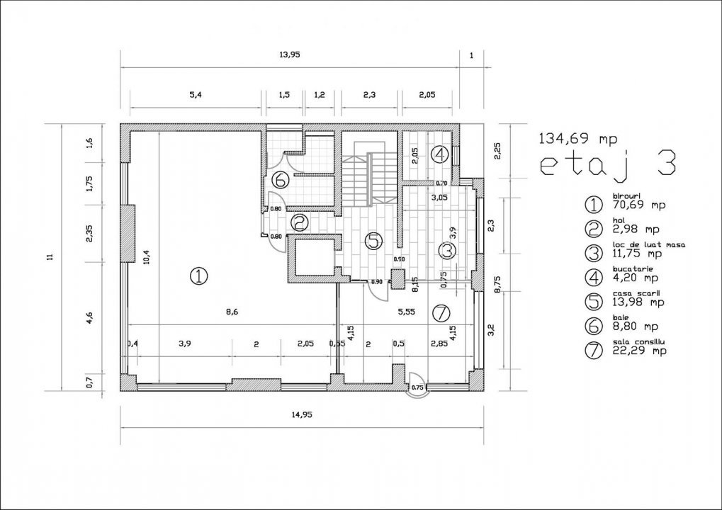 Zonă operațională, ideală pentru funcțiuni tehnice: server room, spații de depozitare, 3 birouri, garaj, cameră tehnică, etc.