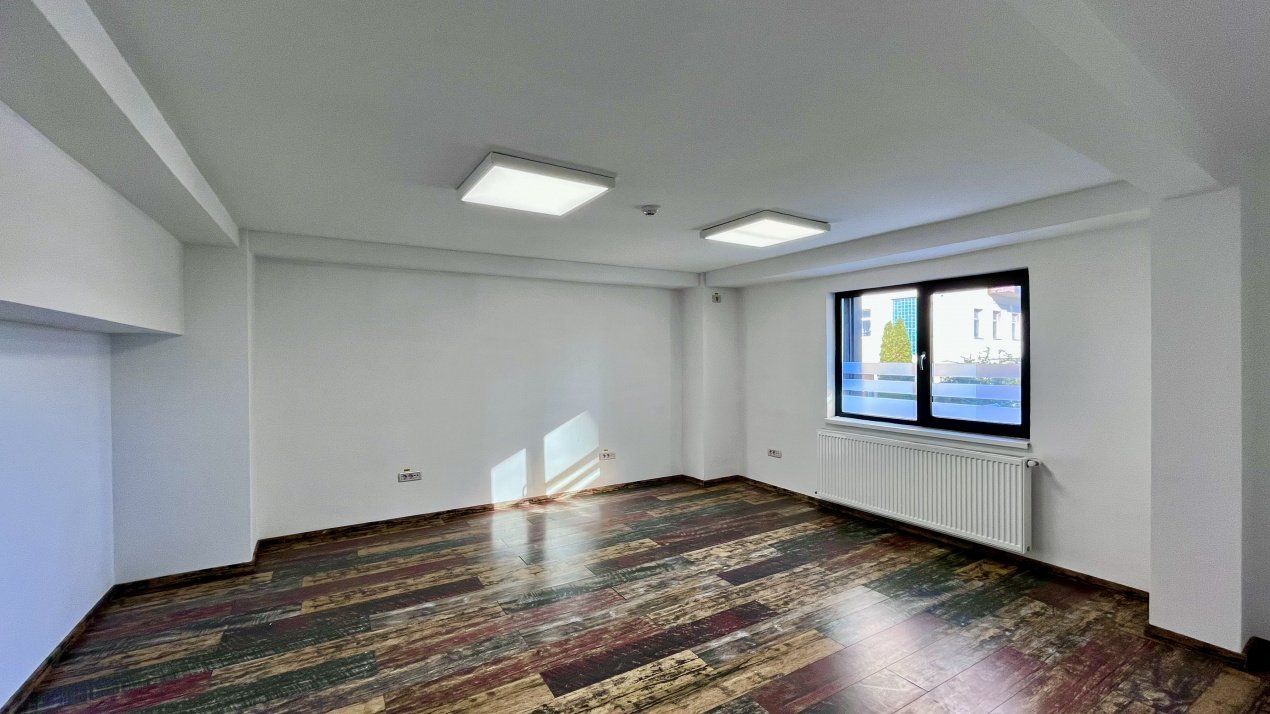 Spațiul este amplasat într-o clădire nouă, la etajul 1 din 3, are 90 mp și beneficiază de toate utilitățile trase, oferind condiții ideale pentru desfășurarea activităților profesionale. Proprietatea este nemobilată, oferind libertate totală fiecărui chiriaș de a-și amenaja biroul exact după nevoile și identitatea propriului business.