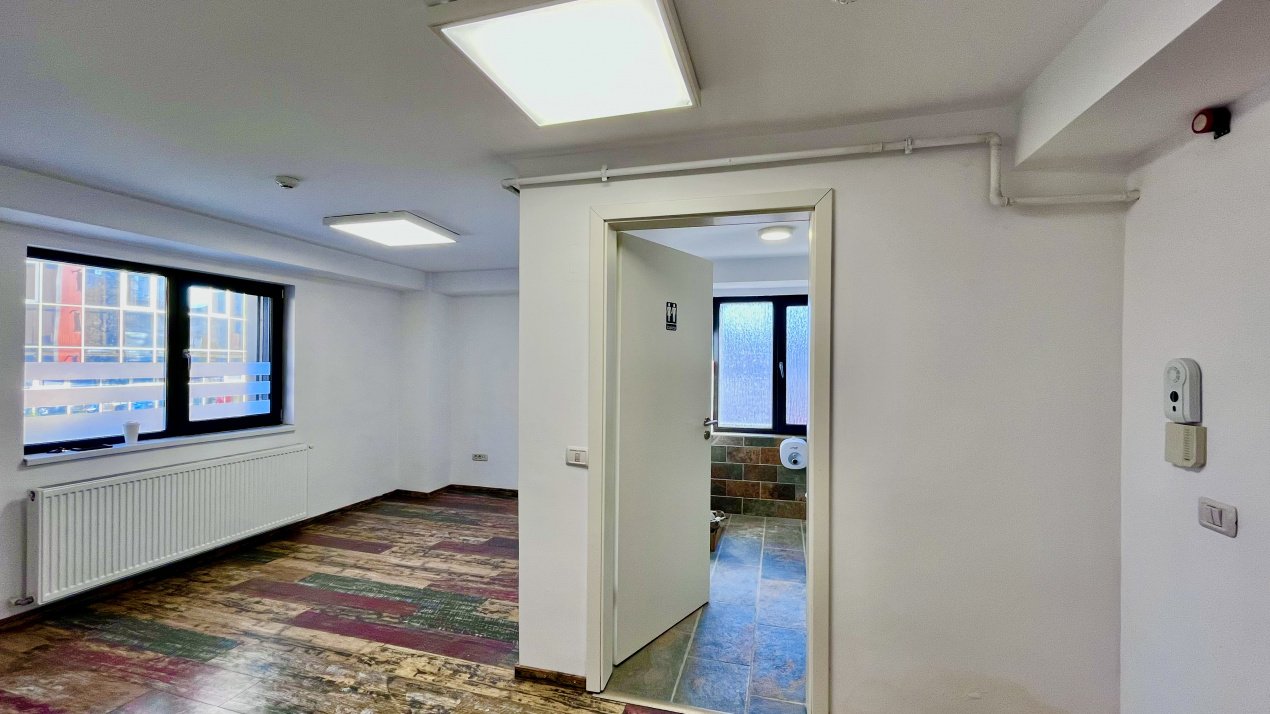 Compartimentarea este practică și eficientă, fiind formată din 3 încăperi separate și o baie proprie, ceea ce permite organizarea facilă a mai multor birouri, săli de întâlnire sau spații de lucru individuale.