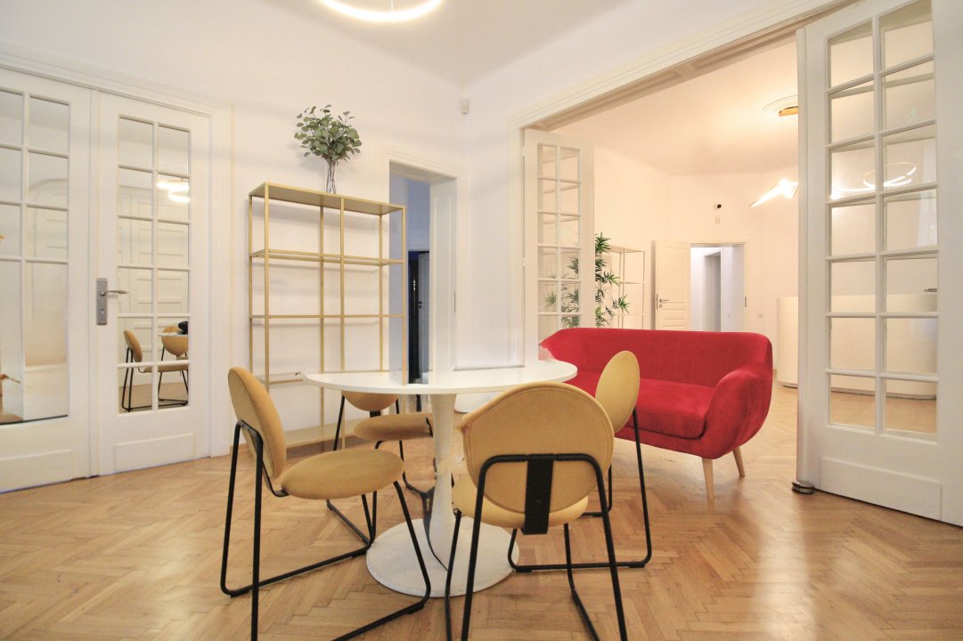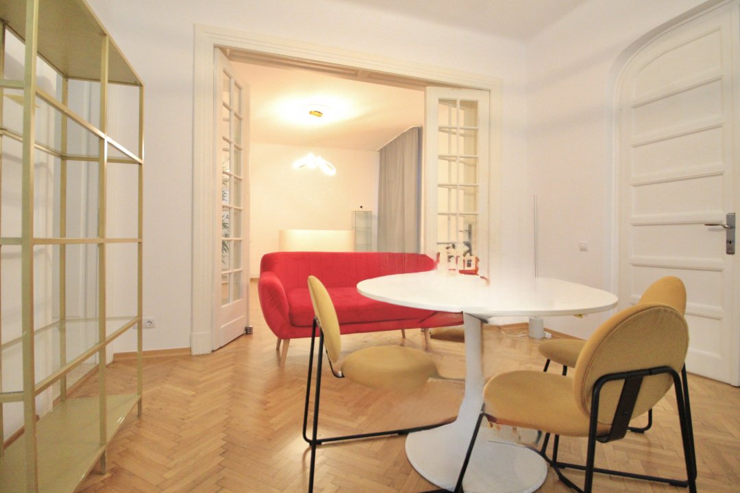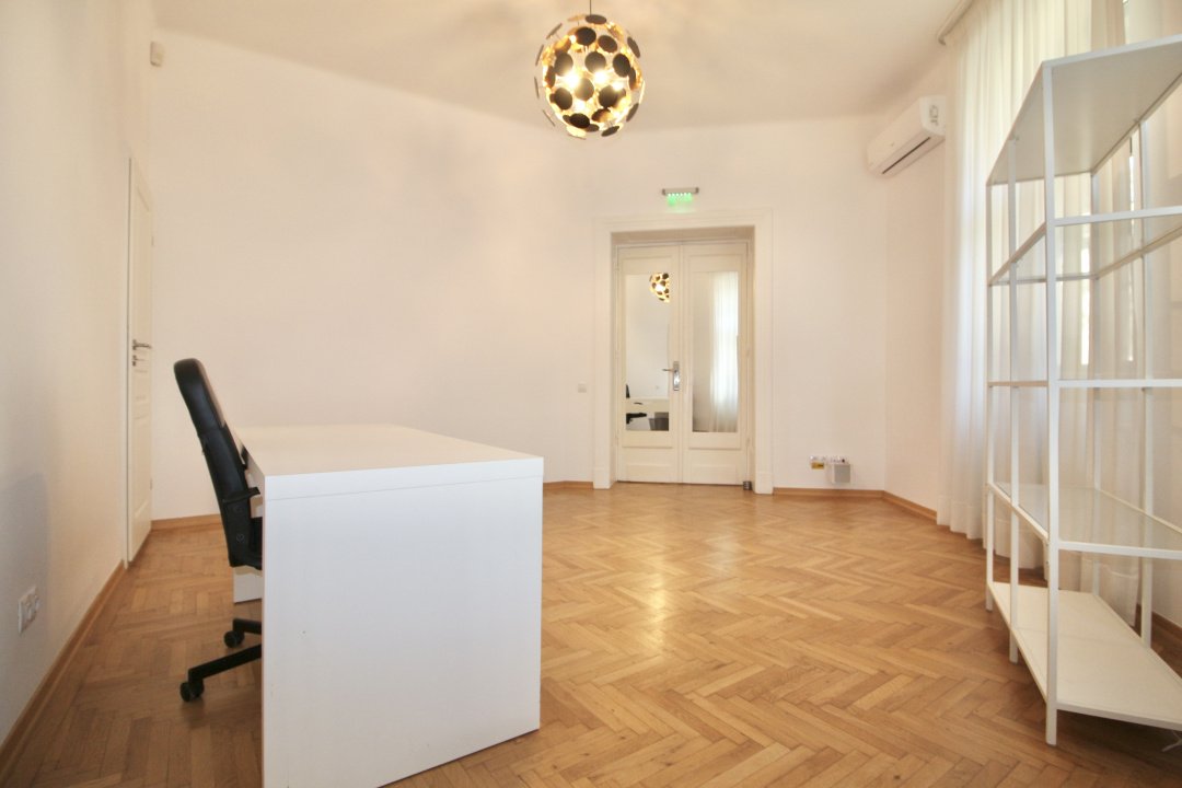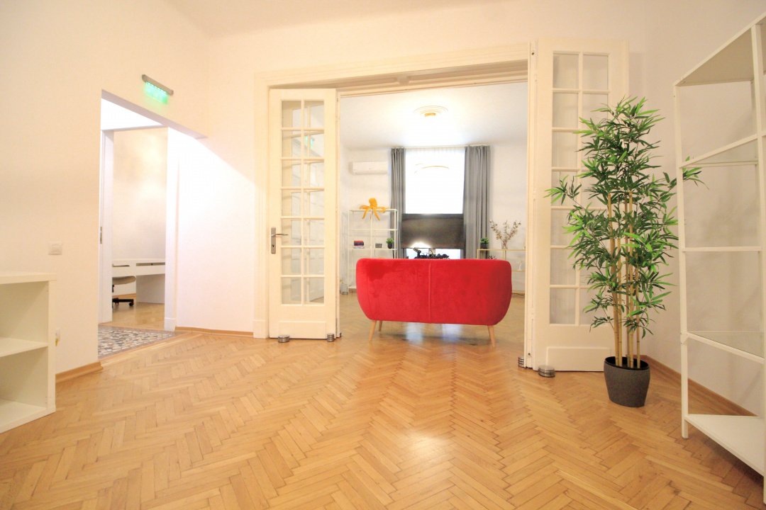 PIATA PACHE PROTOPOPESCU, SEDIU REPREZENTATIV, AMENAJAT LUX, 6 CAMERE, 127 MP! Poziție ultracentrală privilegiata (vedere chiar în rondul Izvorul Rece), foarte aproape de Piata Universității, accesibila ușor din orice zona a capitalei cu multiple mijloace de transport. Interior rafinat, cu elemente originale recondiționate, spații largi si înalte, bucătărie mobilata si utilata, multiple spații pentru depozitare. Spațiul, situat la parterul (înalt) al unui bloc interbelic emblematic, cu vizibilitate stradala si trafic pietonal, poate fi potrivit pentru notariat, cabinete avocatura sau consultanta, psihologie, showroom, magazin (online), firma evenimente, birou arhitectura, etc.