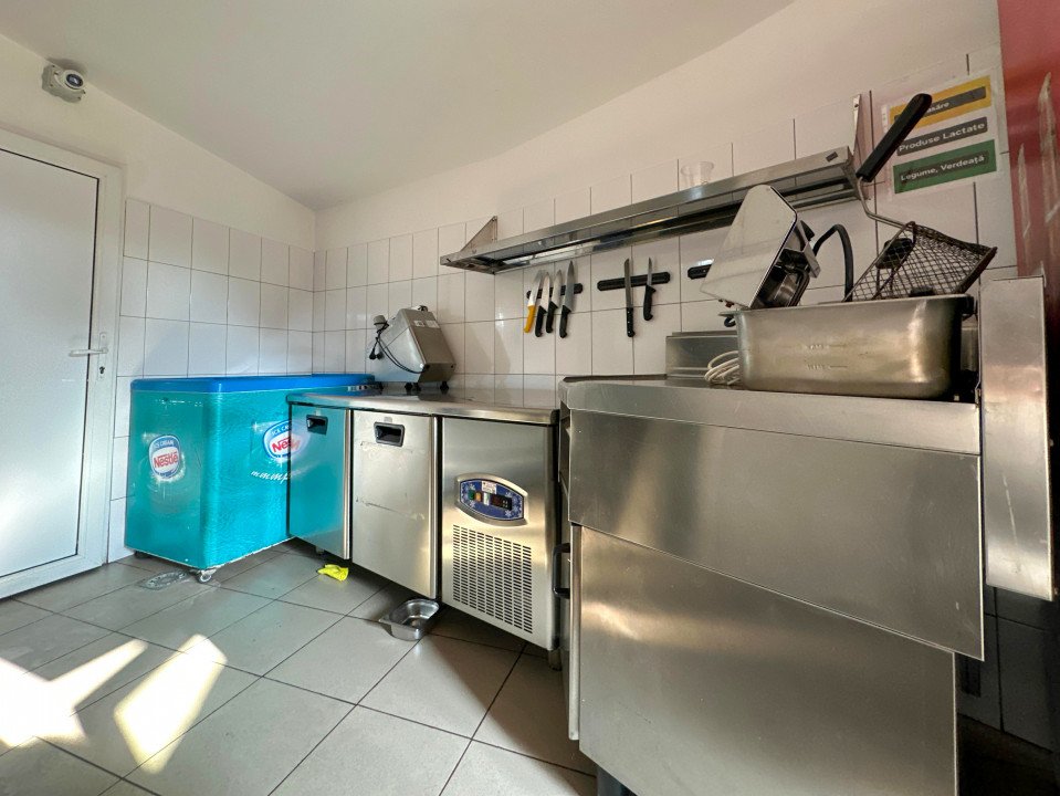 Spatiul comercial, cu o suprafață de 60 mp, este complet echipat și pregătit pentru a-ți începe activitatea încă din prima zi. În interior vei găsi o bucătărie bine dotată, un grup sanitar și un depozit, ideal pentru stocarea ingredientelor și echipamentelor.