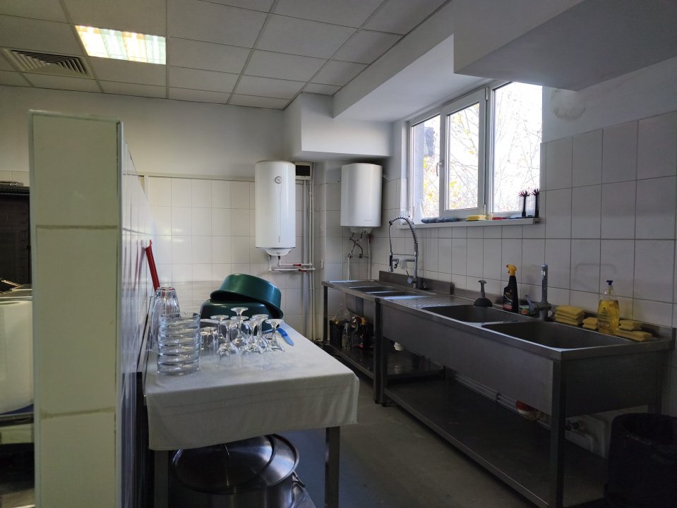 bucătărie ~200 mp, complet utilată, dotată cu frigidere și echipamente profesionale;
