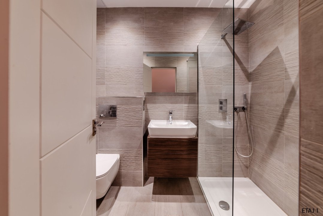 Etajul 1 –  Apartament 2 camere cu 2 bai si birou in suprafata totala de 110.33 mp