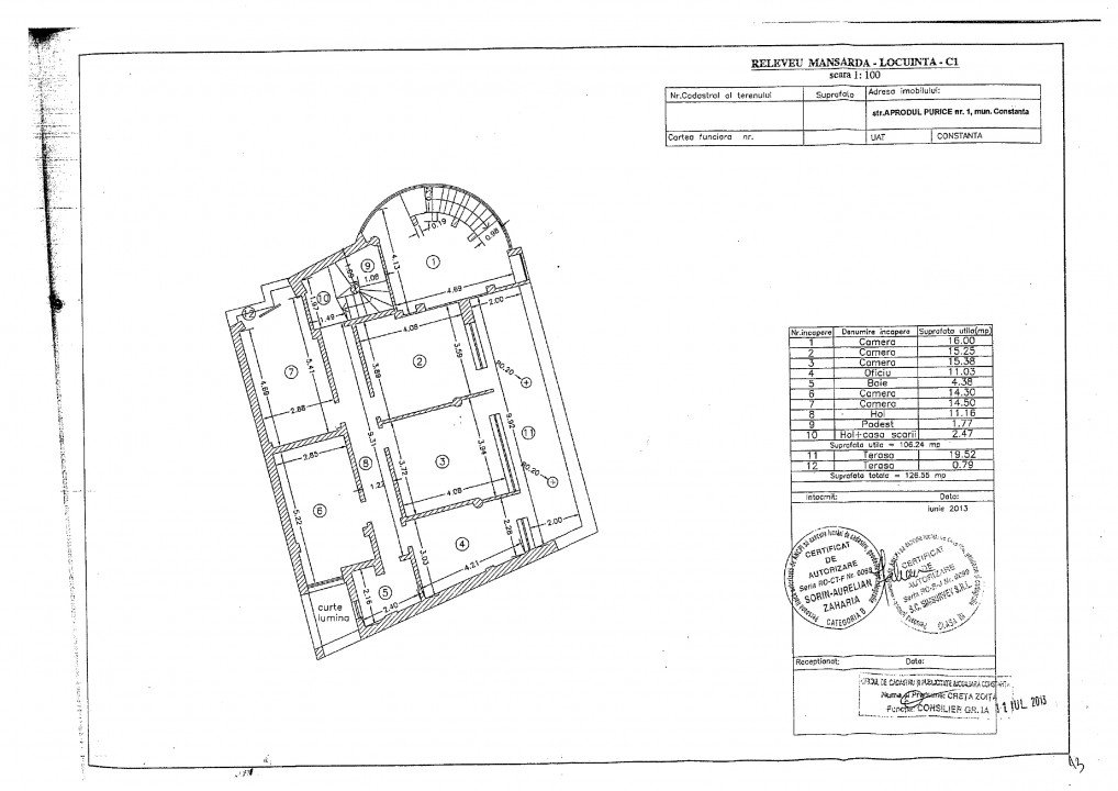 Mansarda –  Apartament 3 camere, o baie si terasa spatioasa in suprafata totala de 126.55mp
