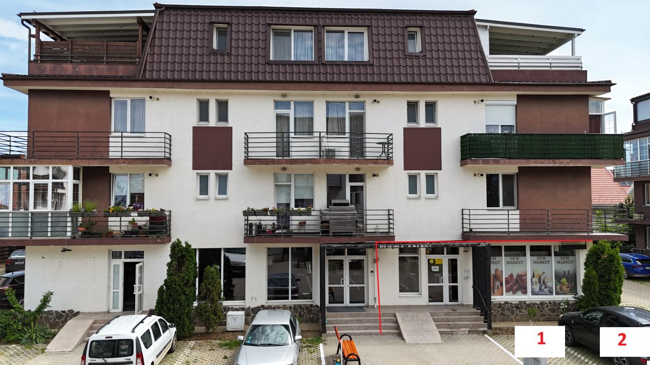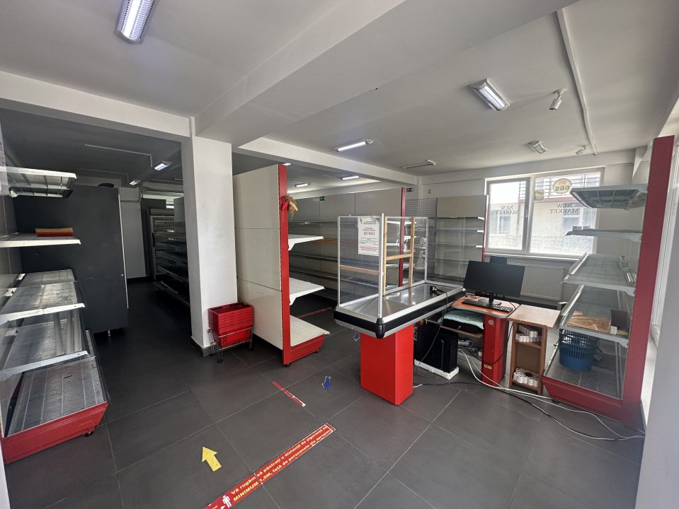 Va prezint un spatiu comercial cu Suprafata de 109,54 MP, utilizat ca magazin cu spatiu de depozitare cu rafturi in spatele blocului. Magazinul este dotat cu vitrine frigorifice pe care le puteti achizitiona suplimentar.