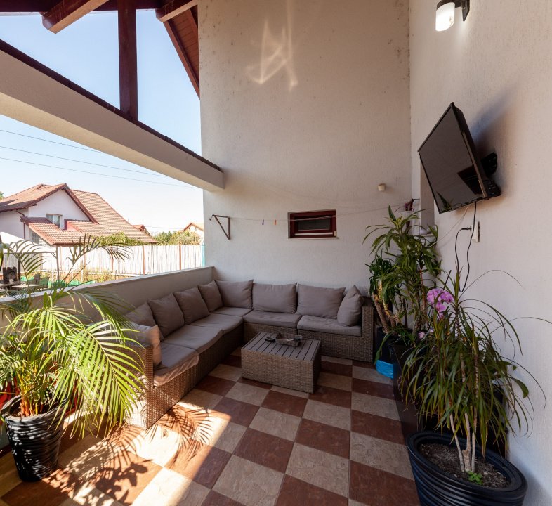 Curtea este amenajata si beneficiaza de sistem de irigatie automat, sistem de alarma conectat la firma de paza si camere de supraveghere.