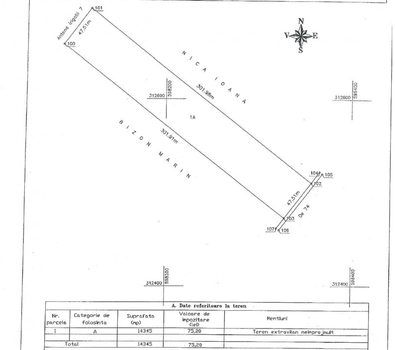 Terenul are o deschidere la drum de 47,51 ml și este ideal pentru investiție.