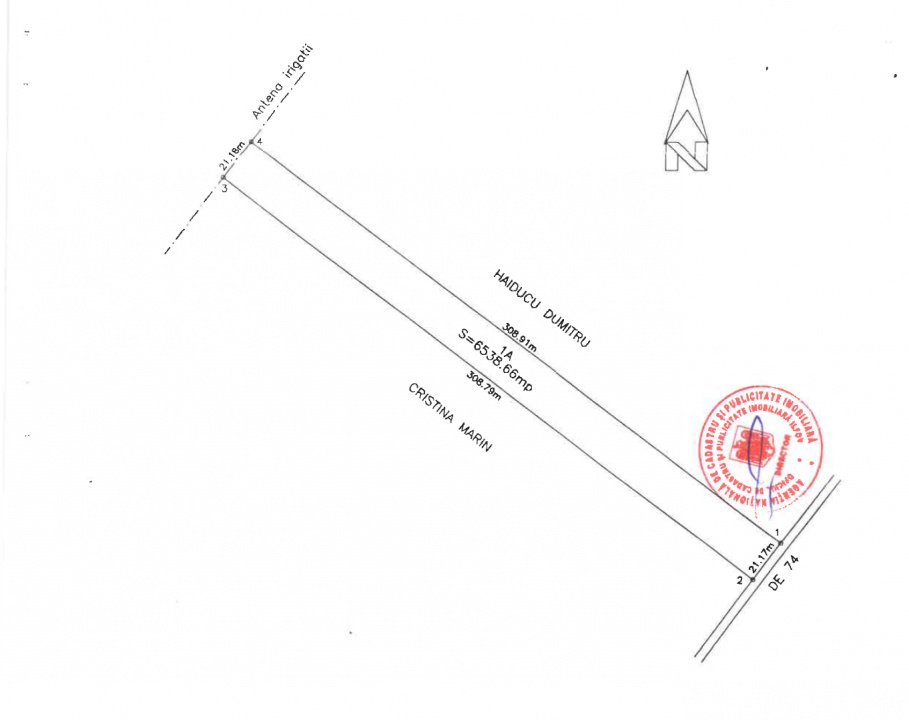 Terenul are o deschidere la drum de 21,18 ml și este ideal pentru investiție.