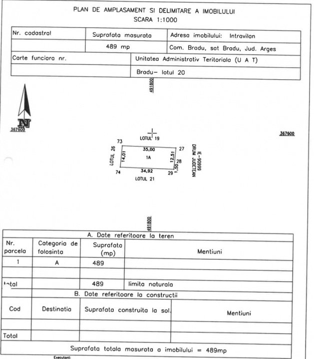 Va propunem spre achizitie un superb teren intravilan de 489 mp in Bradu , la aproximativ 5 minute de Pitesti , intr-o zona in plina dezvoltare cu deschidere de 12,5 m la Drumul Judetean Pitesti- Bradu . Terenul este complet plan si este ideal atat pentru constructia unei case cat si pentru dezvoltarea unei afaceri datorita pozitionarii lui la drumul principal. La limita proprietatii avem apa, gaze, curent electric si canalizare.. Echipa noastra va poate consilia de la vizionare, obtinere credit, inchidere tranzactie. Toate acestea cu comision zero pentru cumparator. Va asteptam cu drag la vizionare!