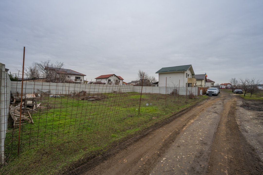 Terenul are o suprafata de 416,34 mp si o cota de 103,25 mp din drumul de acces. Deschidere la drumul de acces 24,38 m si adancime 17,08m.  Teren intravilan situat pe strada privata cu vecinatati si utilitati. Terenul este ingradit cu gard de beton pe 3 laturi si vecin cu casa construita pe o latura. Gaze, electricitate, canalizare sunt pe drumul de servitute langa teren, iar apa curenta este la intrarea pe drumul de servitute.