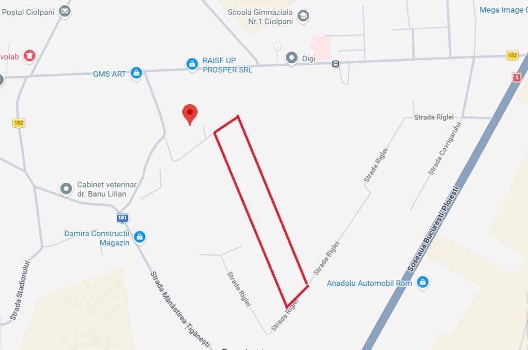 Vă propun spre vânzare un teren intravilan situat în zona centrală a localității Ciolpani, pe Strada Lacului nr. 16 – o zonă în plină dezvoltare, apreciată pentru accesul rapid către București și proximitatea față de DN1.