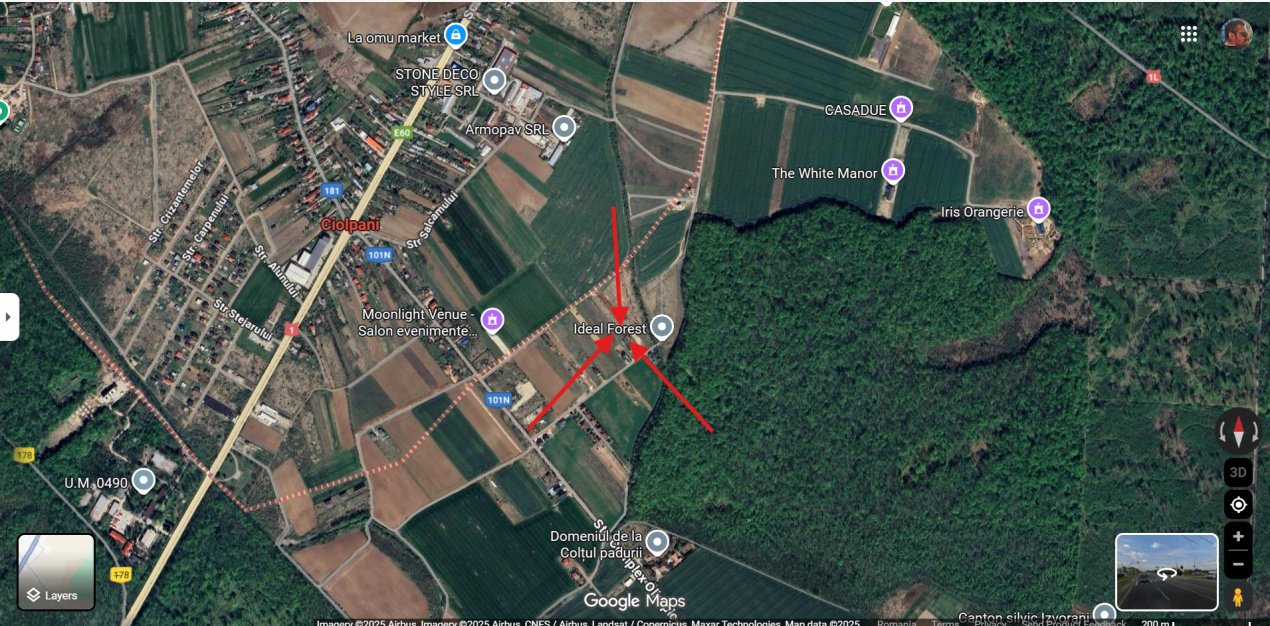 Teren de vanzare in Ciolpani, in suprafata de 1.650 mp cu deschidere de 51 m la drum, perfect pentru construcția unei reședințe spațioase. Proprietatea include drum de servitute și acces, oferind un avantaj practic imediat pentru intrare/ieșire și posibilități de parcelare.