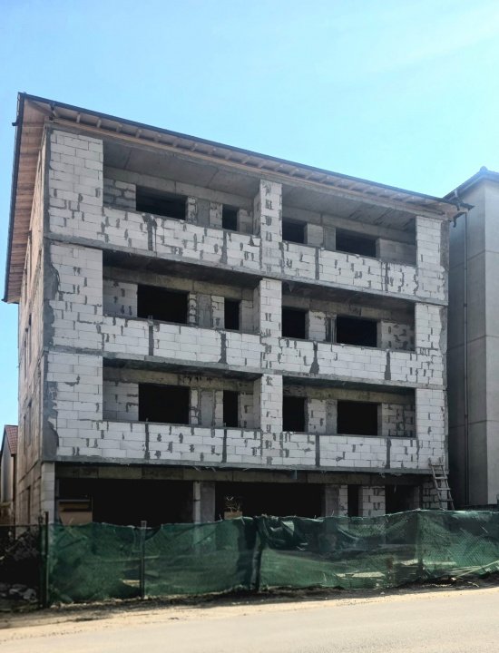 Clădirea are o suprafata construita de 690 mp, 172.86 mp/nivel si este realizată din BCA cu compartimentarea interioară deja executată.