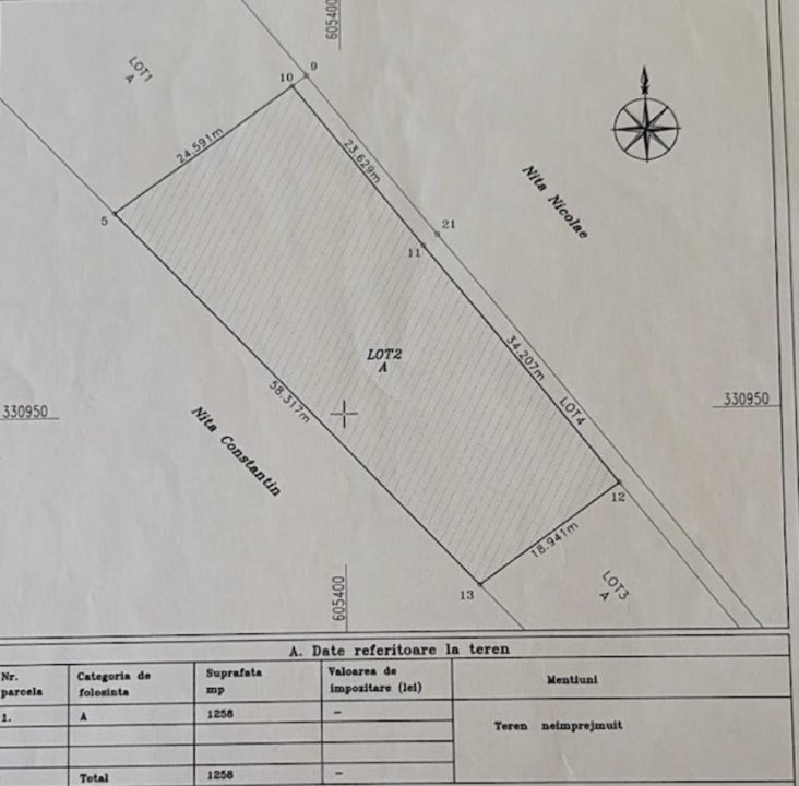 Cu o suprafață totală de 1.258 mp, parcela oferită spre vânzare este intravilană și perfect pretabilă pentru construcție. Dimensiunile sunt ideale pentru cei care visează la o casă luminoasă, cu o curte generoasă, unde fiecare anotimp poate fi trăit în toată frumusețea lui.