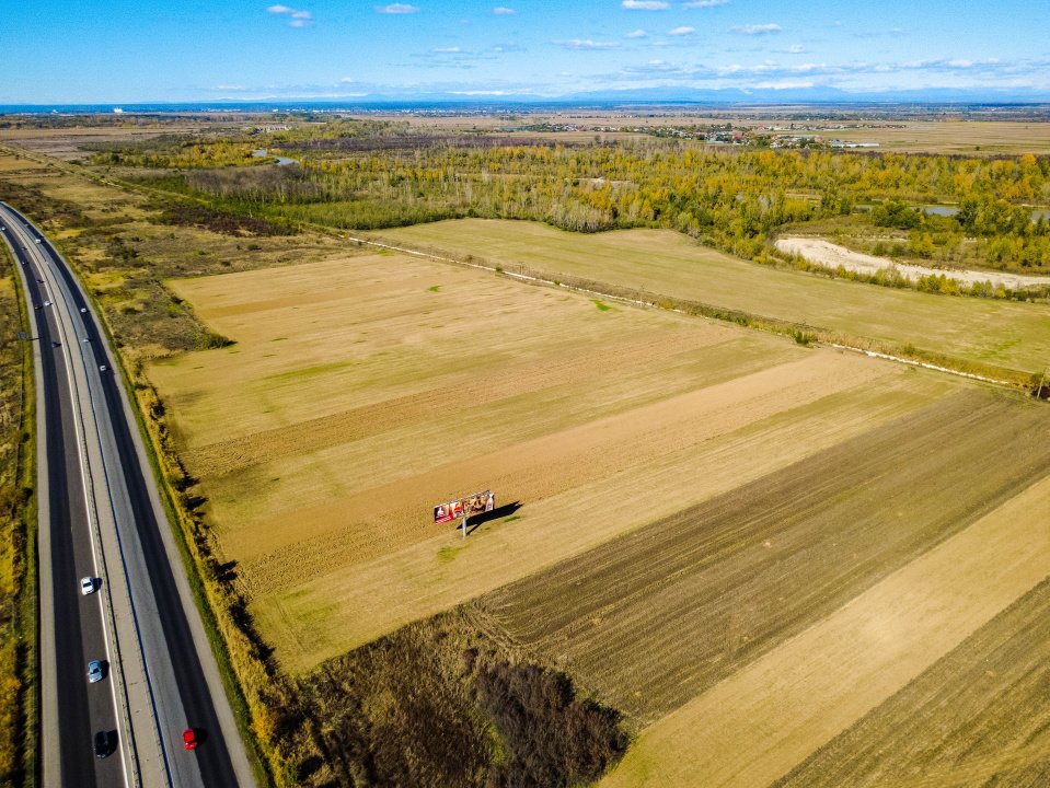 Ambele parcele se află chiar lângă autostradă, cu deschidere generoasă și acces facil prin localitate, la doar 1 km de nodul rutier.